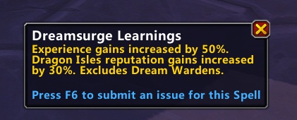 En effet, le buff actuel de réputation de la poussée onirique, Apprentissage de la poussée onirique, octroyait un bonus de 50% à la réputation.
