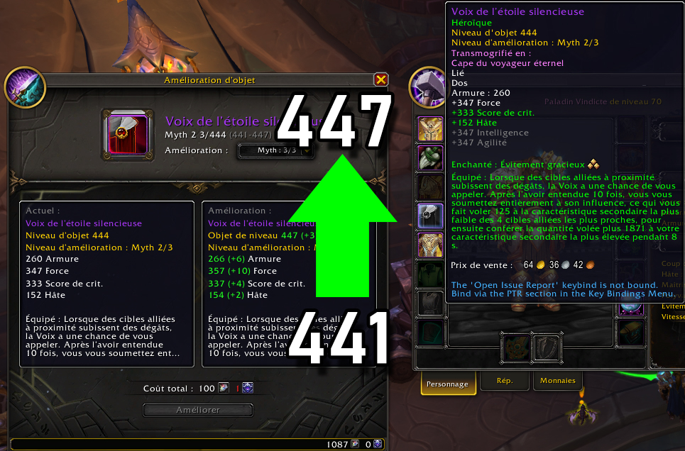 Elles auront ainsi 3 paliers au total ce qui signifie que vous aurez jusqu’à 2 améliorations à faire afin de monter les pièces 441 au niveau d’objet 444 puis 447.