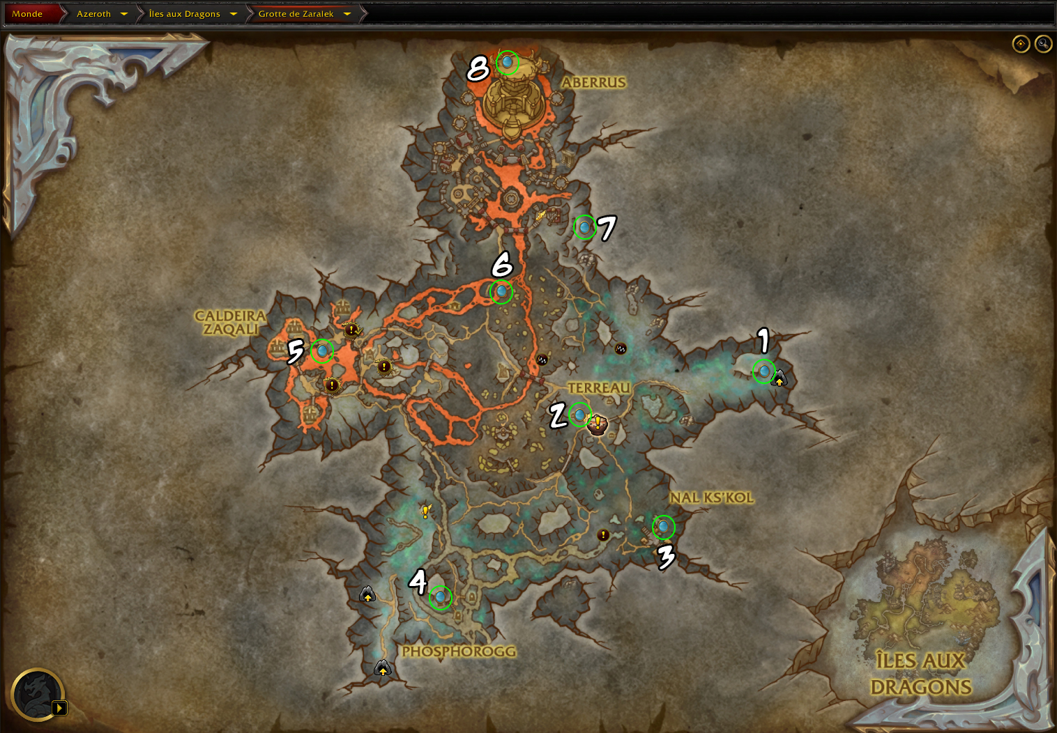 Tout d’abord, je vous présente l’ensemble des coordonnées pour ceux qui veulent rush, puis les Dracoglyphes un par un :