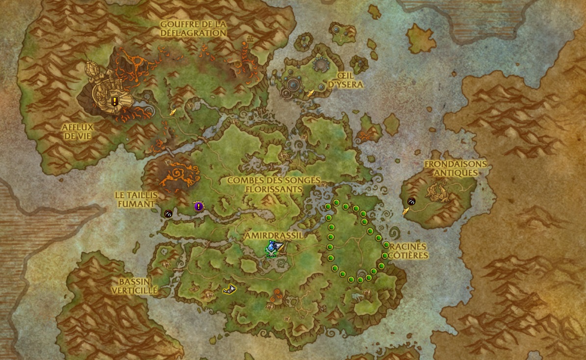 Sul’raka patrouille au Rêve d’Émeraude dans le sens anti-horaire. Il vous suffit de suivre ses traces dans le même sens ou bien de les remonter dans le sens contraire, peu importe.