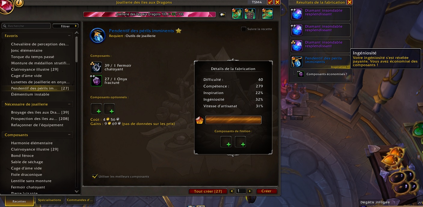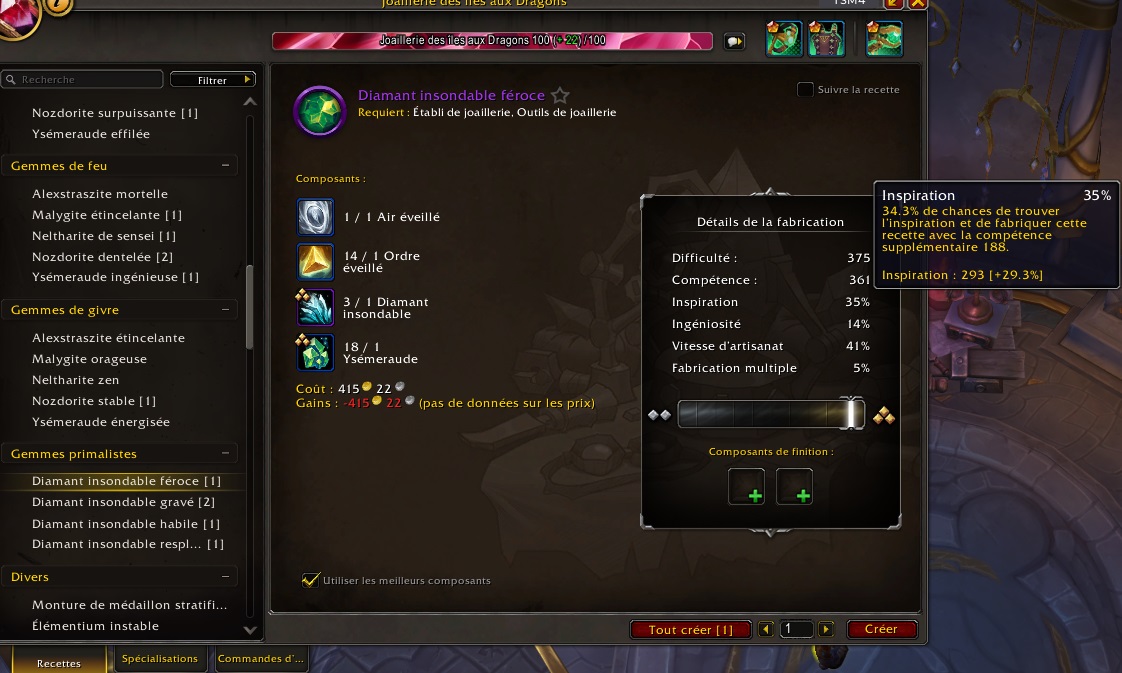 Cela signifie donc qu’à CHAQUE fabrication, vous avez 35% de chances que l’Inspiration proc.
