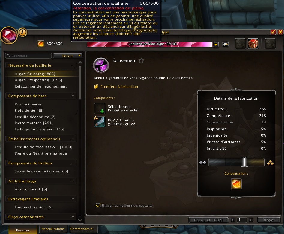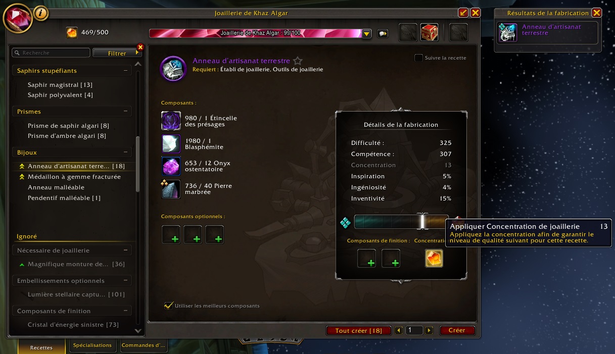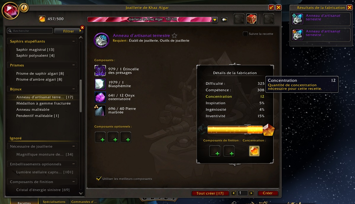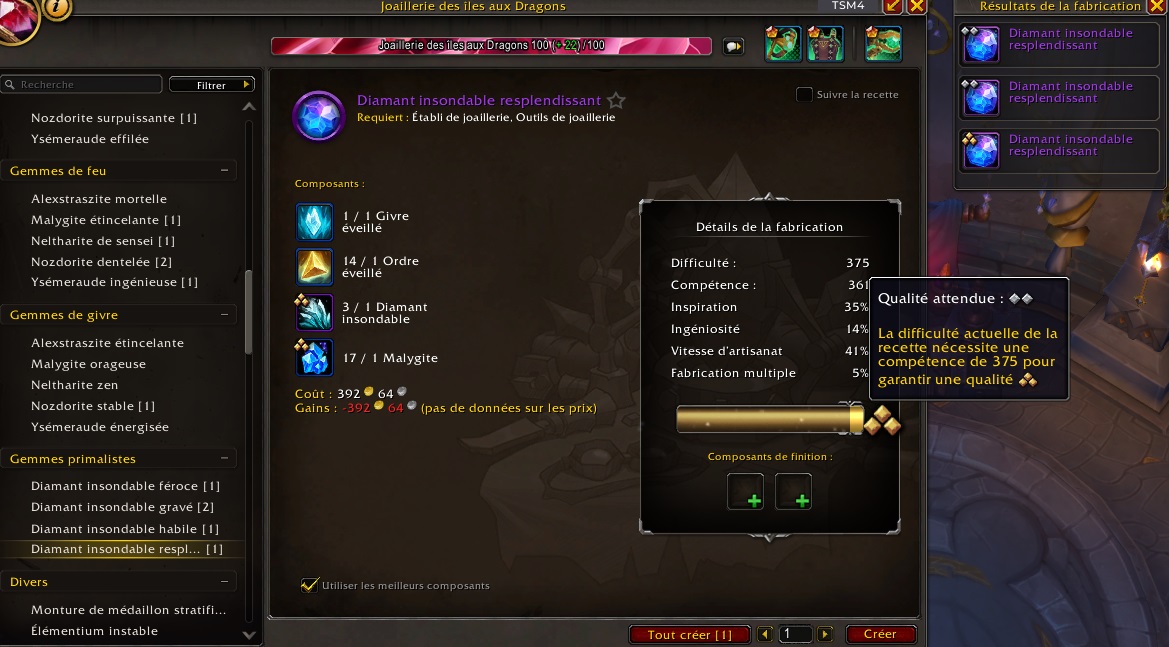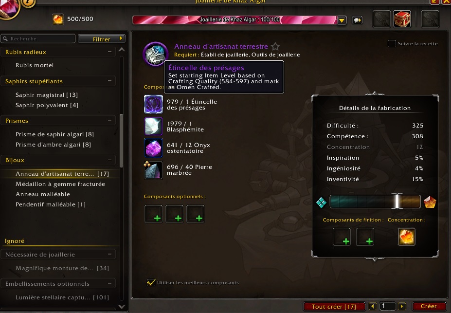 Cette caractéristique est extrêmement importante si vous souhaitez fabriquer des objets de niveau maximum.