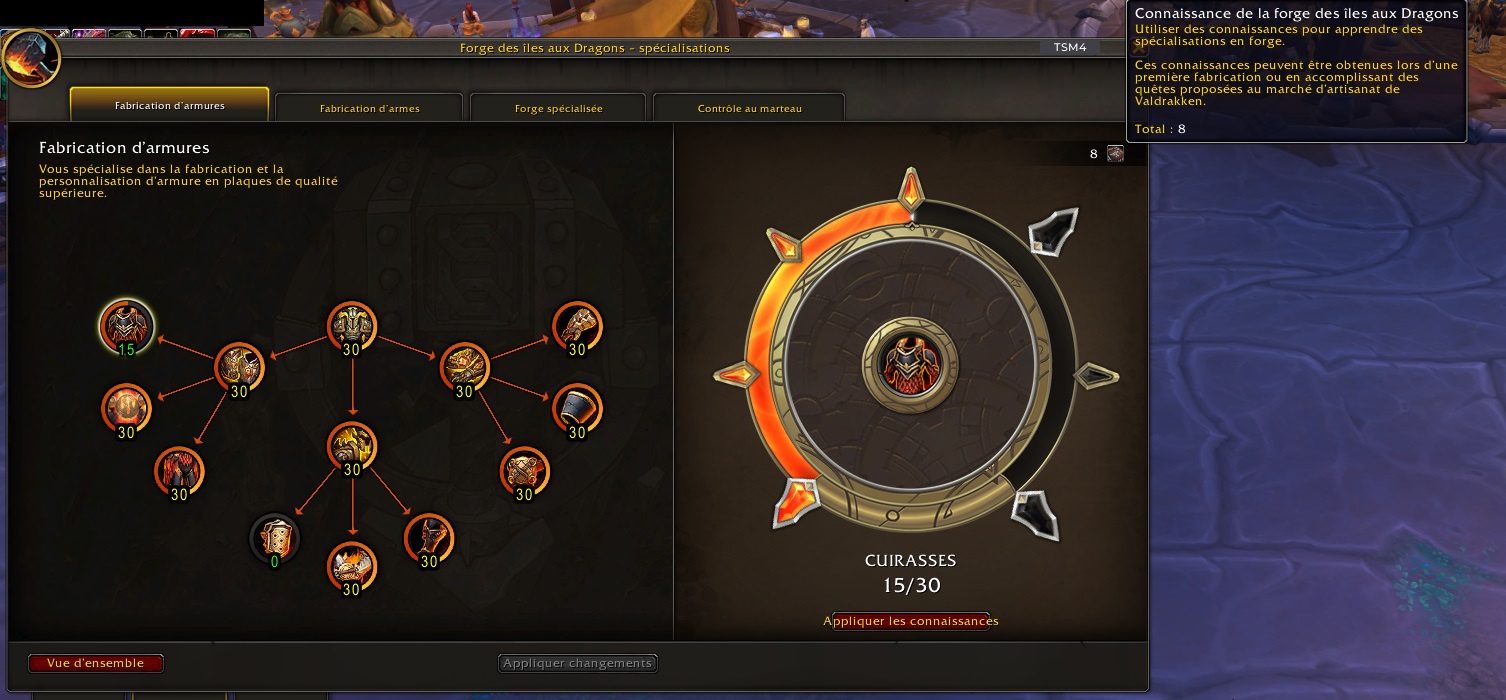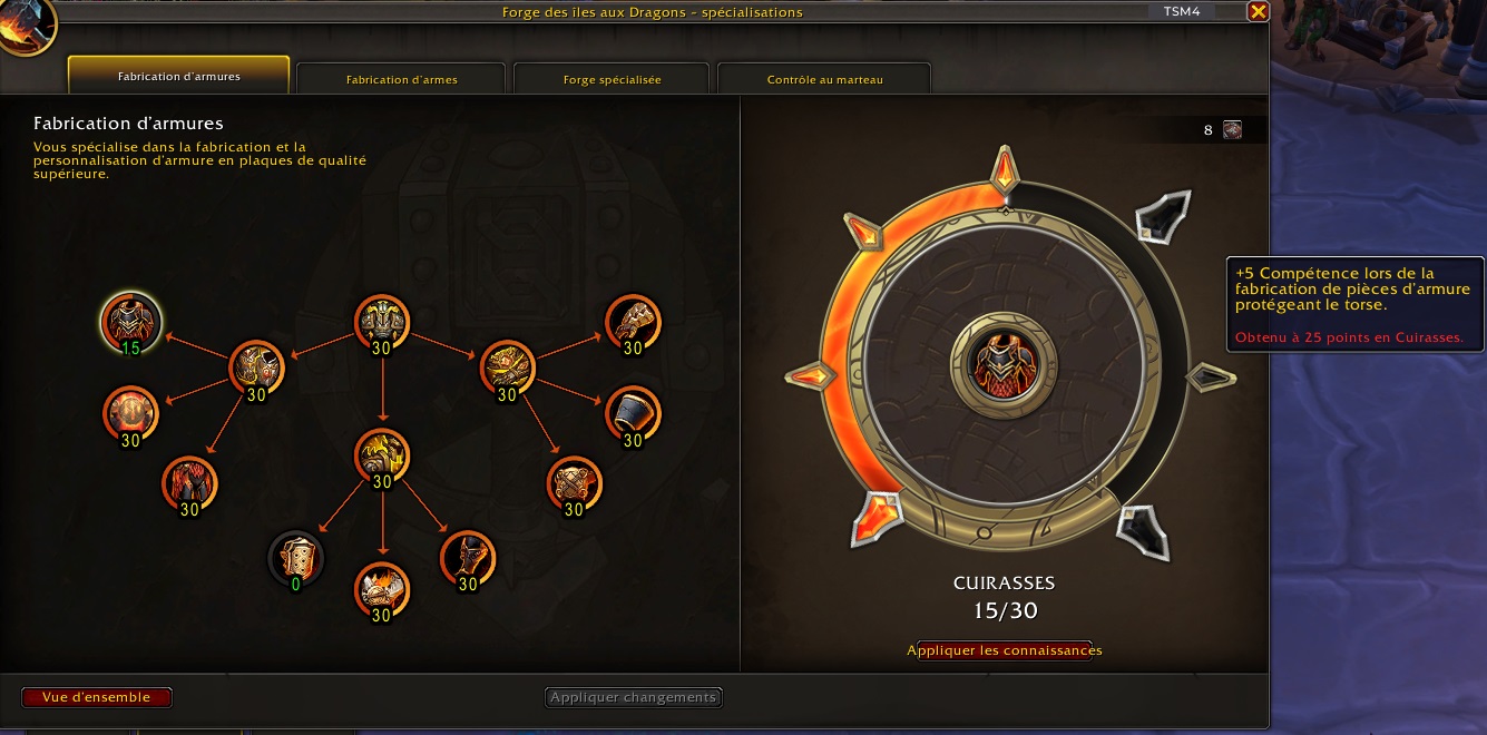 Afin d’améliorer votre savoir-faire et de créer des pièces de qualité supérieure, vous devrez donc passer par les arbres de spécialisations.