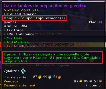 Le nombre d’Embellissements maximum est limité à 2 par personnage comme indiqué sur une pièce dotée d’un Embellissement. - Confère un niveau d’objet JcJ : Même principe que l’Imprégnation de puissance en JcE mais pour le PvP (JcJ en français). En gros, il s’agit de votre Écu PvP.