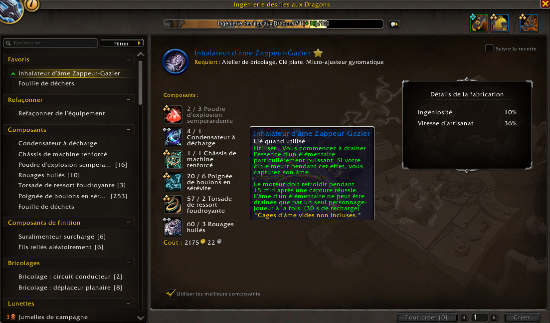 Tout d’abord, il faut vous procurer un Inhalateur d’âme Zappeur-Gazier qui sont fabriqués par les Ingénieurs et pouvant être achetés à l’hôtel des ventes.