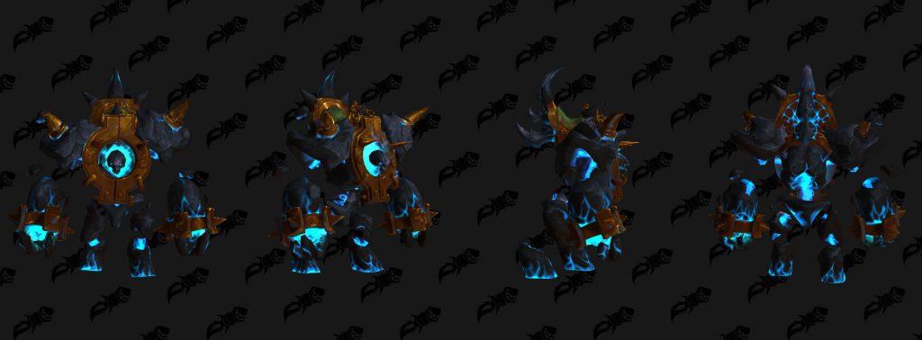 Il s’agit de variantes de montures comme  l’Infernal du brasier infernal obtenable sur Gul’dan au Palais Sacrenuit => Noyau de brasier infernal.