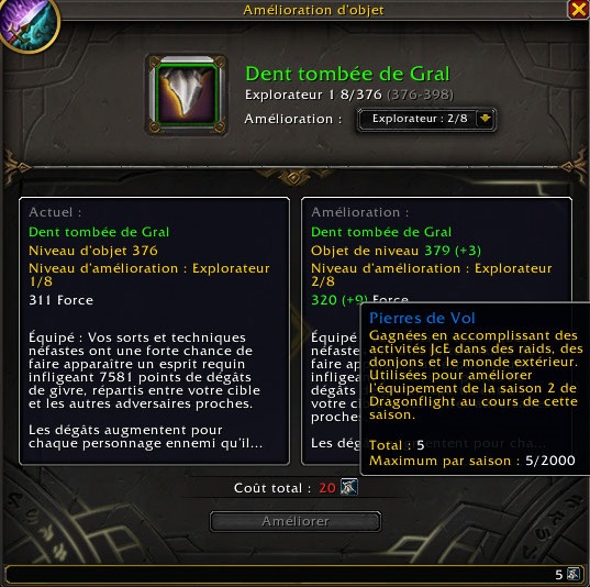 Les améliorations coûteront des Pierres de Vol et des Écus Ombreflamme.