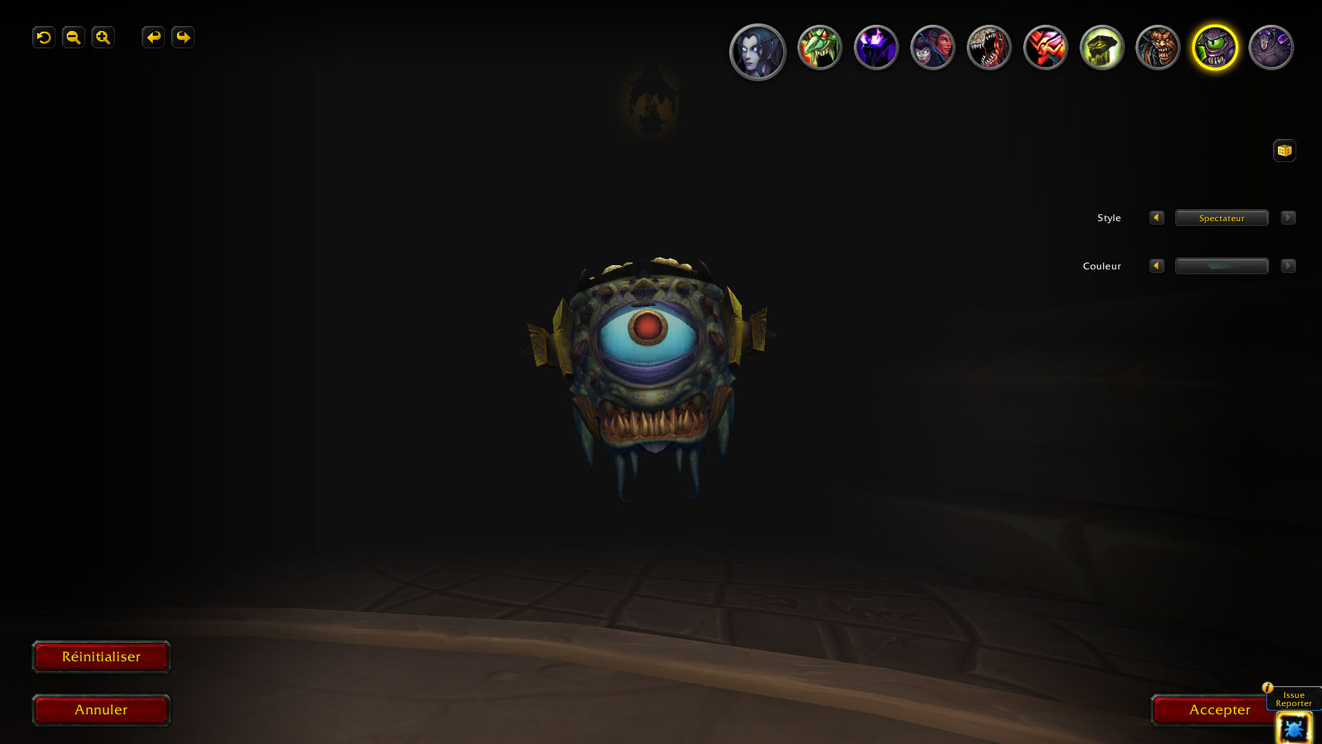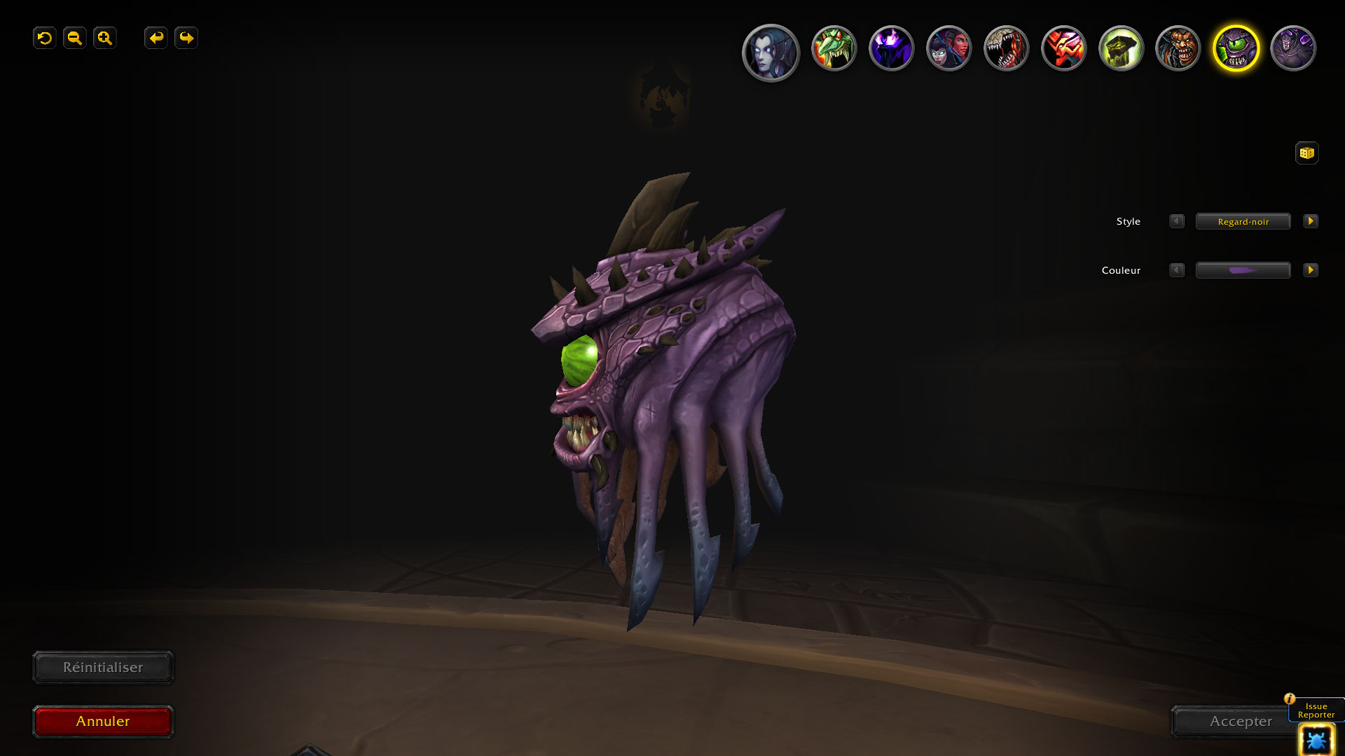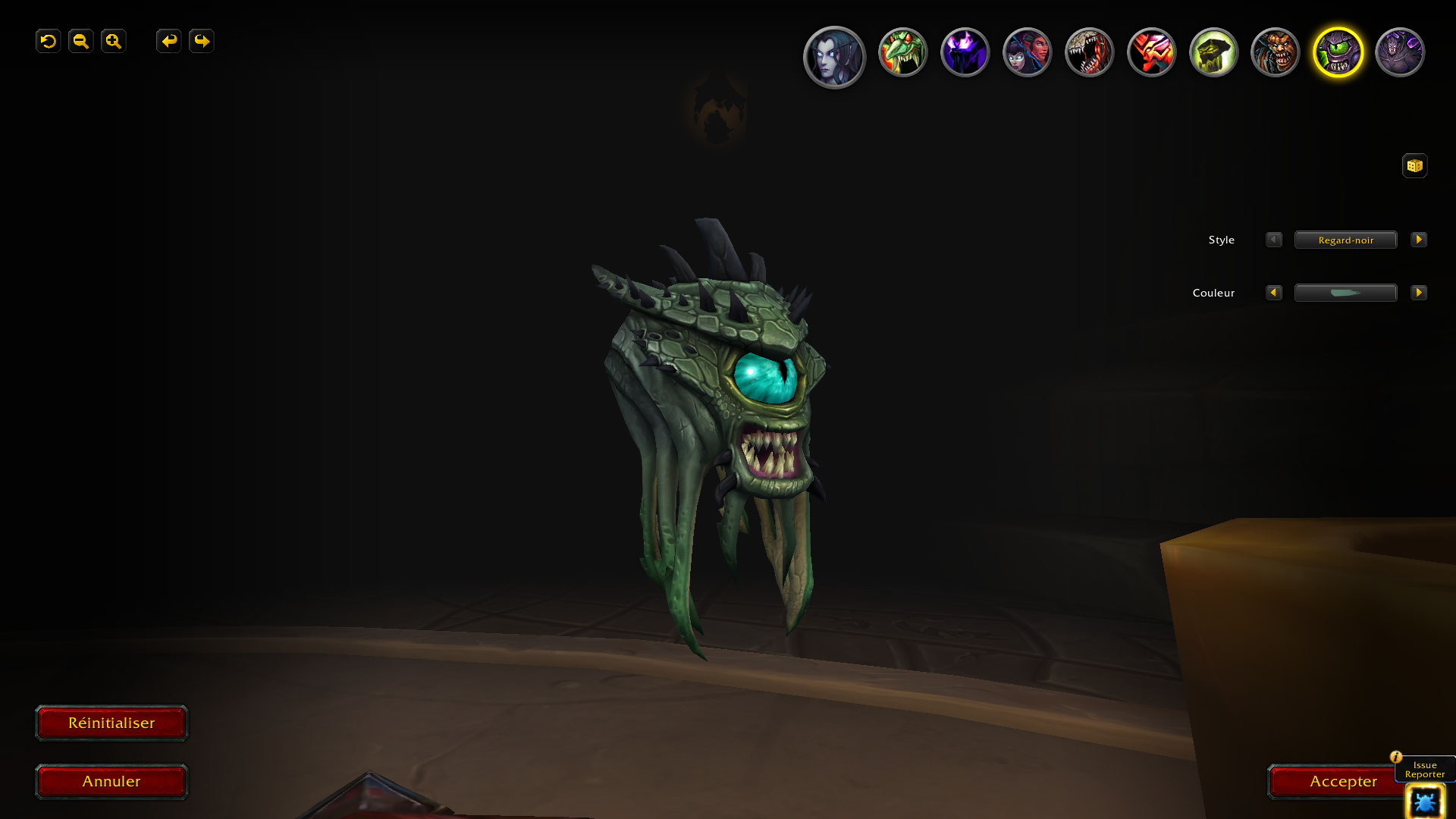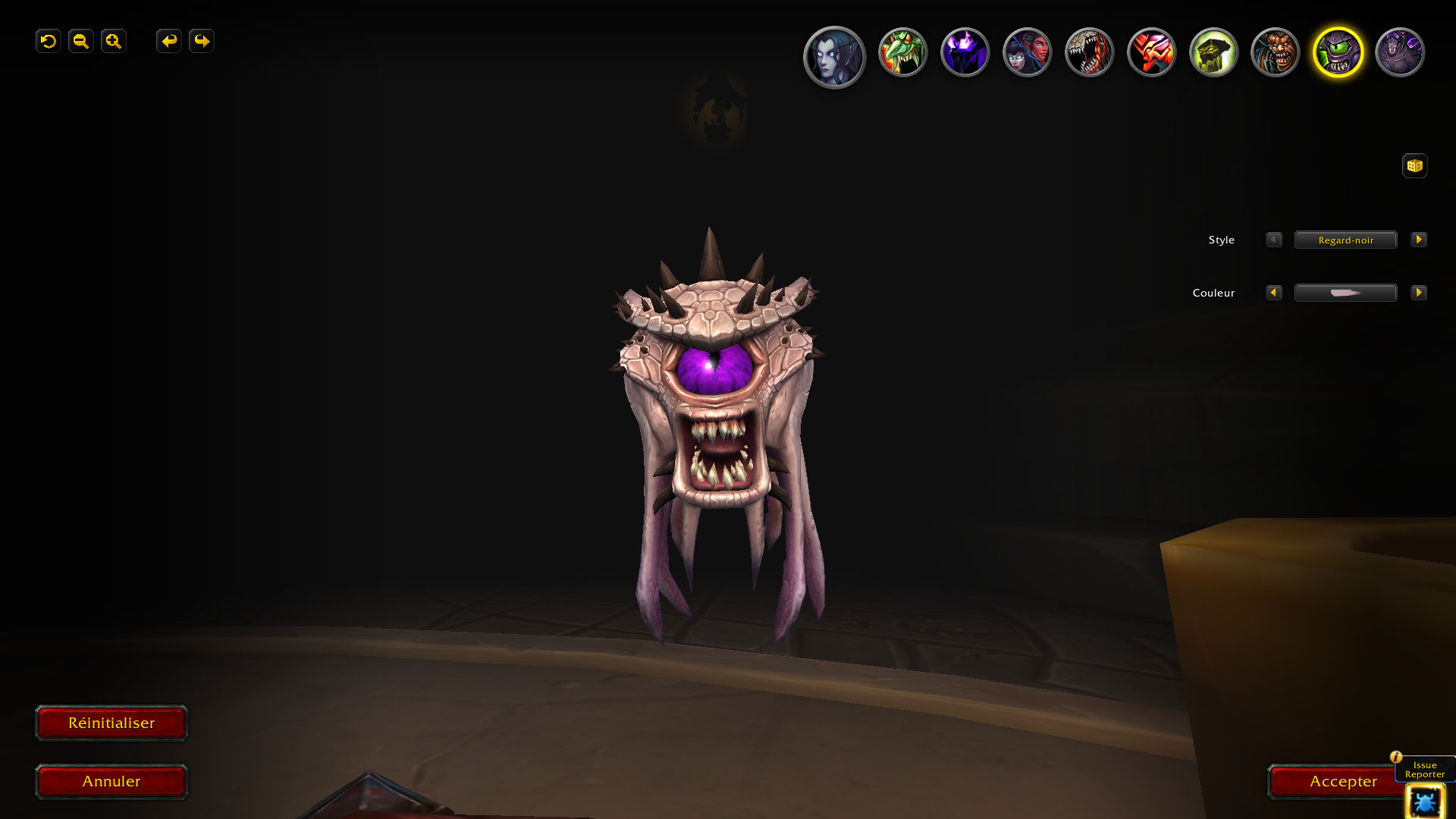 Le familier de la spécialisation Affliction du Démoniste, Invocation de Regard-noir dispose de 11 options de personnalisation incluant 3 modèles : Regard-noir originel, Observateur (qui était utilisé comme personnalisation du Chasseur corrompu avant sa suppression) et Spectateur.