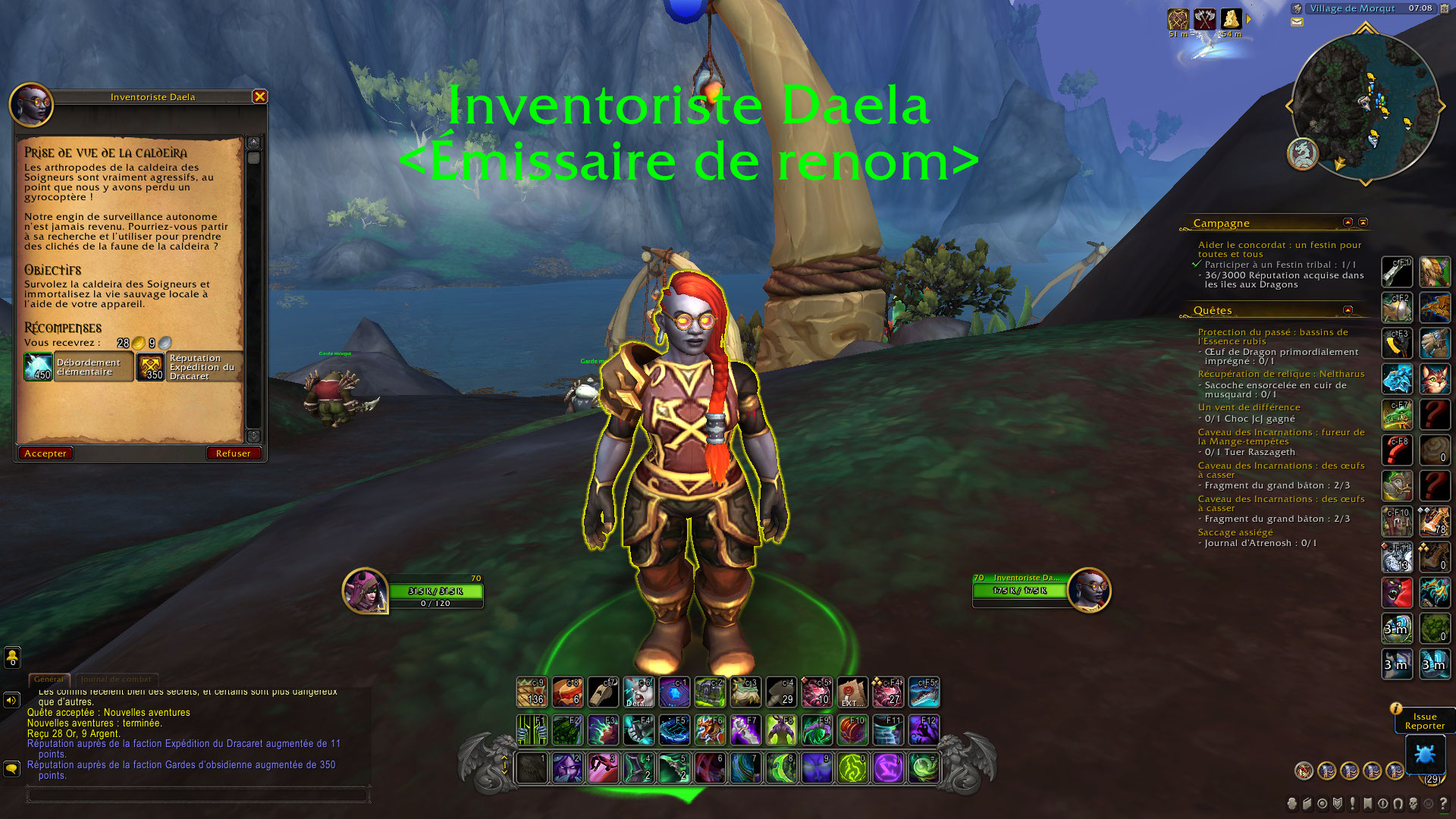 Gobelins et Nains mis à part, vous aurez plusieurs quêtes journalières vous récompensant principalement en débordement élémentaire et en points de réputation.