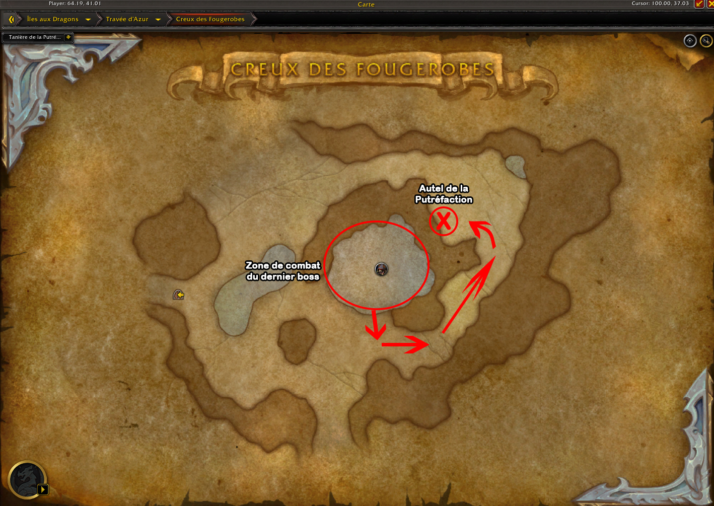 L’Autel de la Putréfaction se situe donc à l’intérieur du donjon du Creux des Fougerobes, dans la salle du dernier boss.