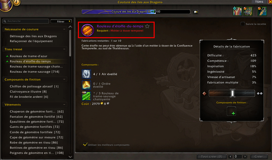 Le Métier à tisser temporel est le poste d’artisanat spécial pour la Couture spécialisée en Étoffe du temps.