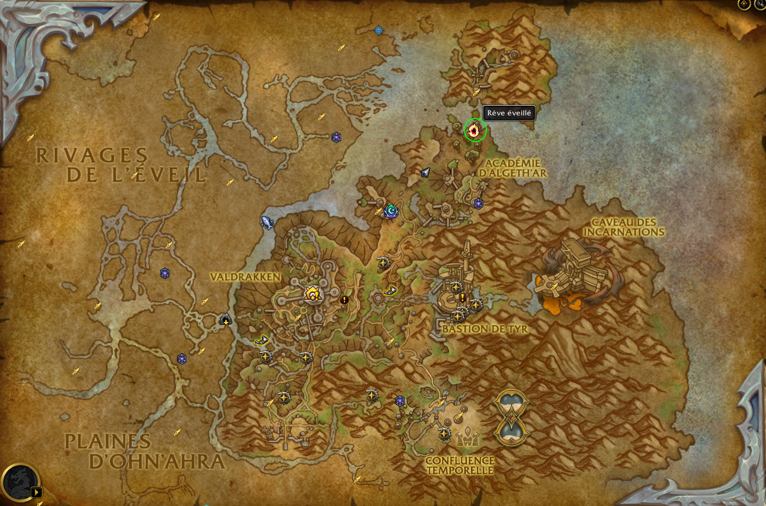 De plus, lorsque l’évènement est actif, vous pouvez vous repérer à l’icône du Rêve éveillé en cours sur la carte :