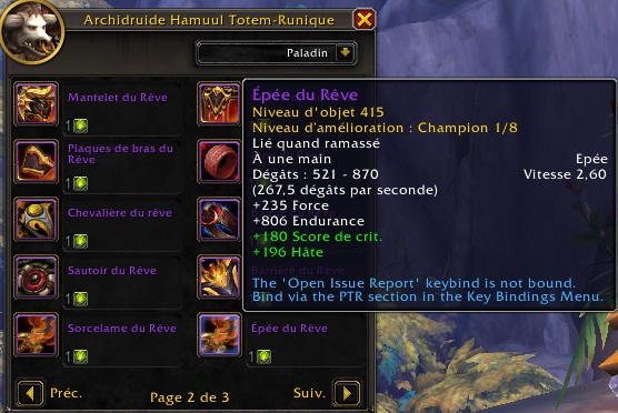 - Un objet 402 ilvl, donc Vétéran, lié au compte