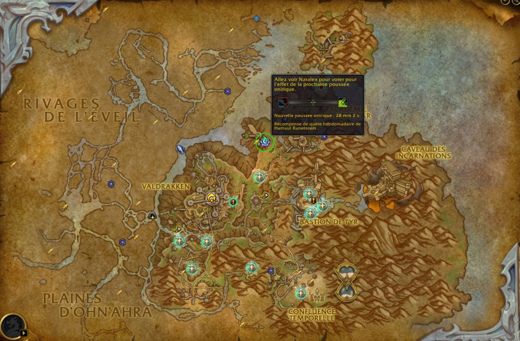 Cherchez Hamuul Totem-Runique à Valdrakken, qui vous mettra sur la voie et vous confiera la quête « Poussée de rêves ». Les personnages-joueurs peuvent également se rendre directement sur l’icône de poussée onirique dans la zone concernée.