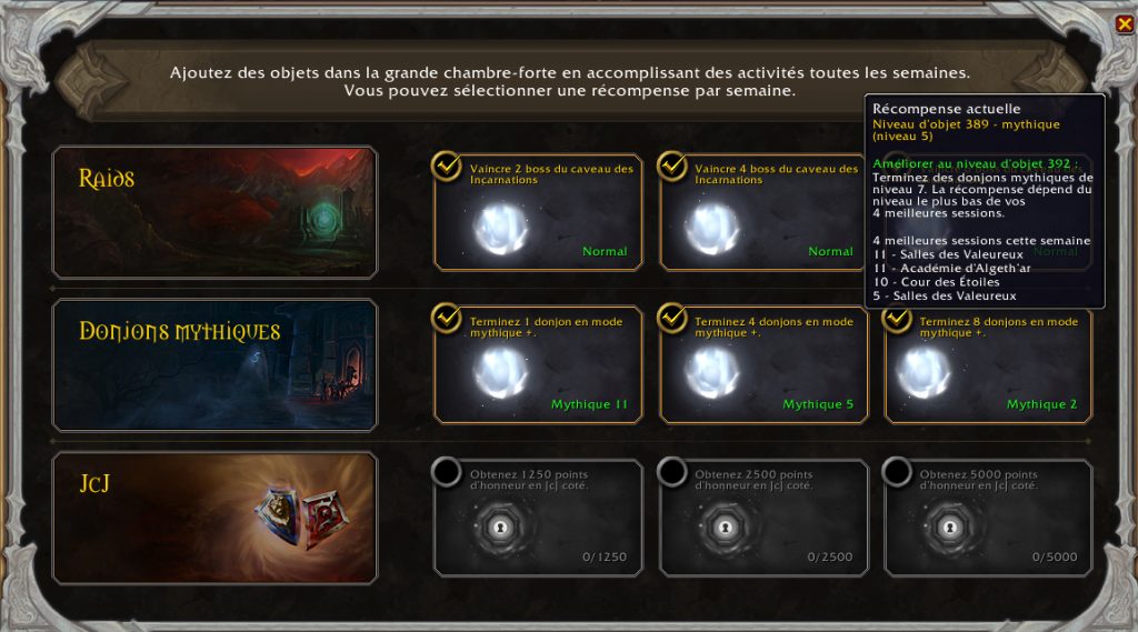 Niveaux de récompenses en Mythique + et dans la Grande chambre forte