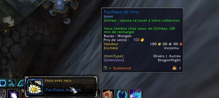 - Jouet (pierre de foyer exclusive aux Worgens) : Pacifique de Tess