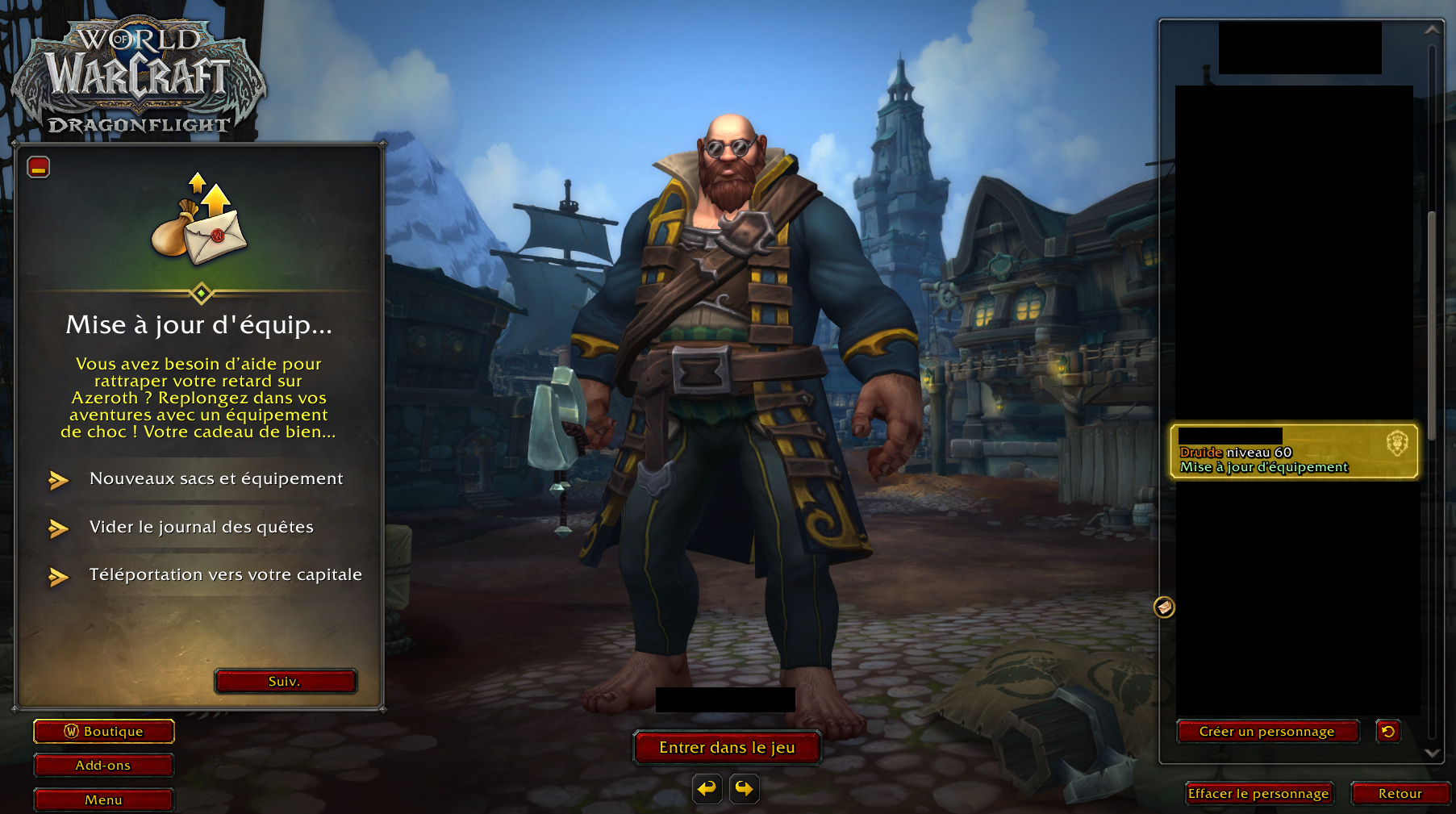 - Une fois la mise à jour d’équipement acceptée, le personnage se connectera au jeu et sera téléporté directement là où se trouve Chromie.