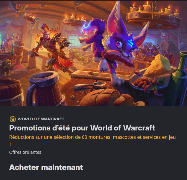 Les soldes en cours pour l’univers World of Warcraft (WIII inclut) concernent les catégories suivantes :