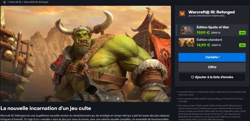 - Le jeu Warcraft III : Reforged : -50% sur toutes les éditions