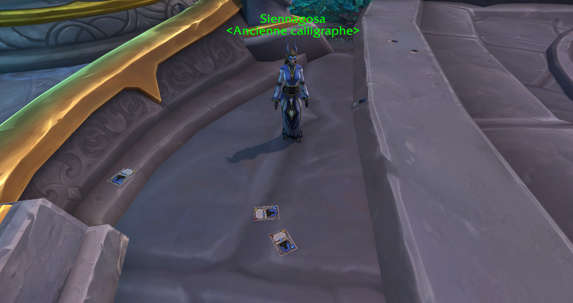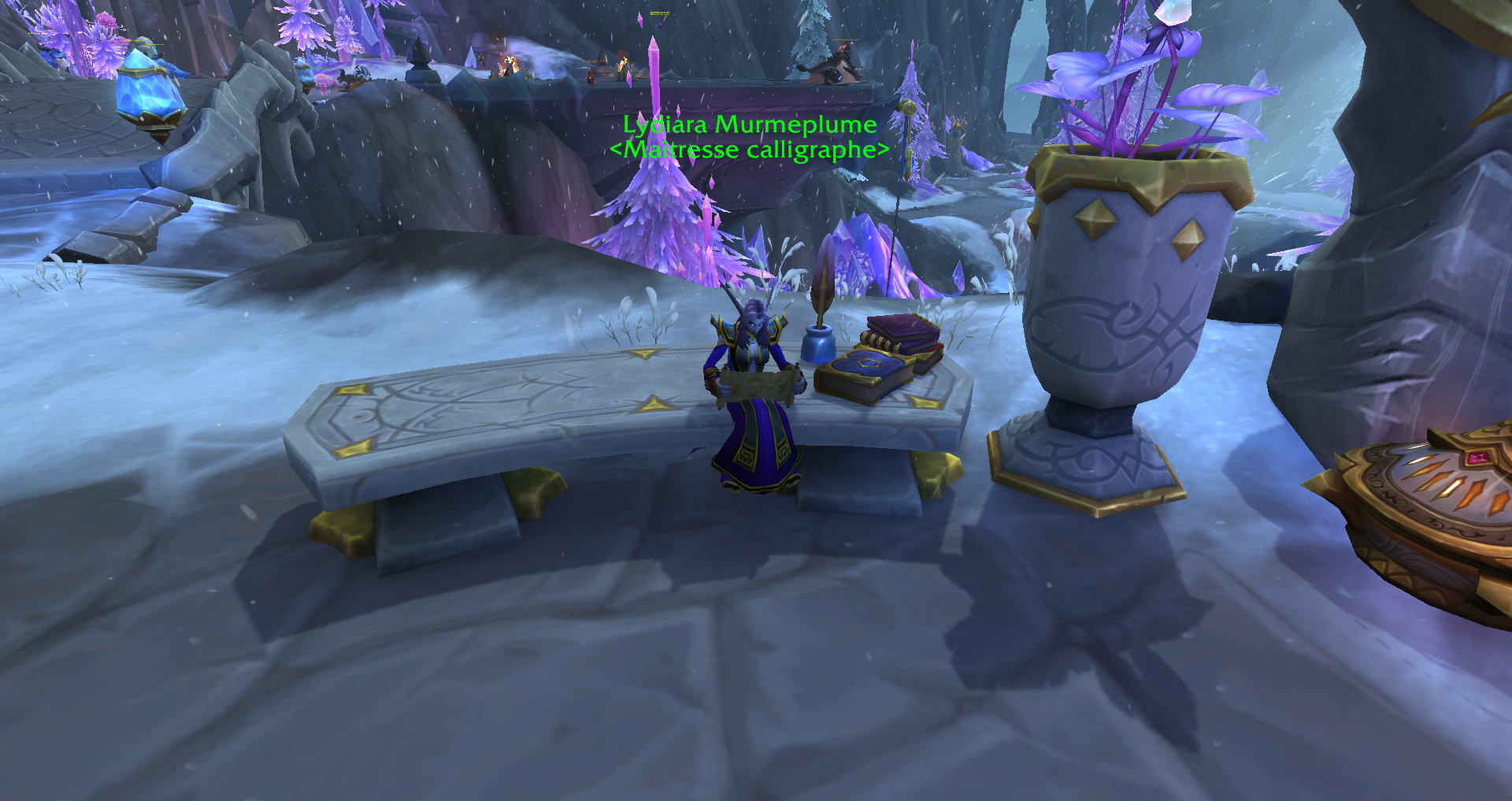 | Parchemin gelé | Travée d’Azur | 43.67, 30.89 | Derrière le Commandant arcanique. Attention, c’est un Élite 70 |