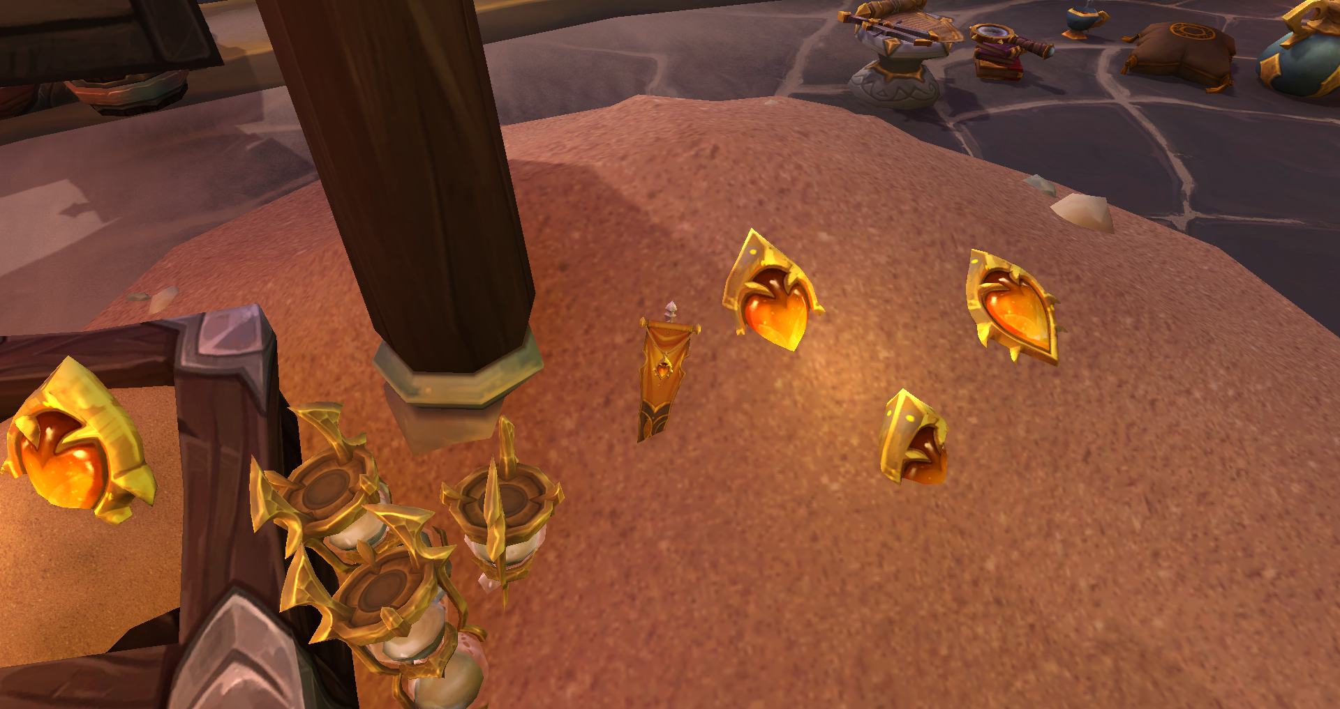 | Lingots étranges | Rivages de l’Éveil | 65.58, 25.62 | Sur le côté d’une tente, un mob 70 à proximité |