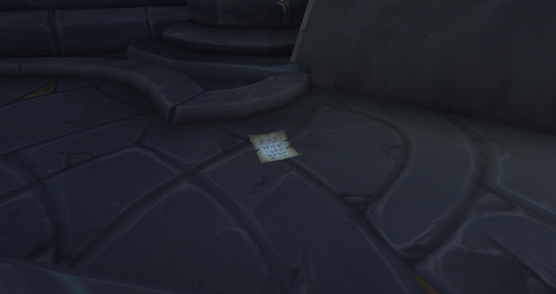 | Carte de Sombrelune poussiéreuse | Travée d’Azur | 46.20, 24.01 | À l’intérieur du bâtiment, en haut de l’escalier, posée par terre |
